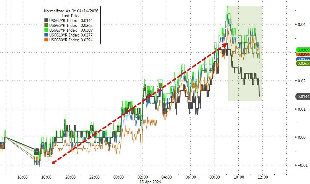 Higher oil prices (and the equity strength) pushed bond yields up by about 3–4 basis points across the curve. The dollar traded sideways, while gold limped lower but stayed comfortably above $4,800.