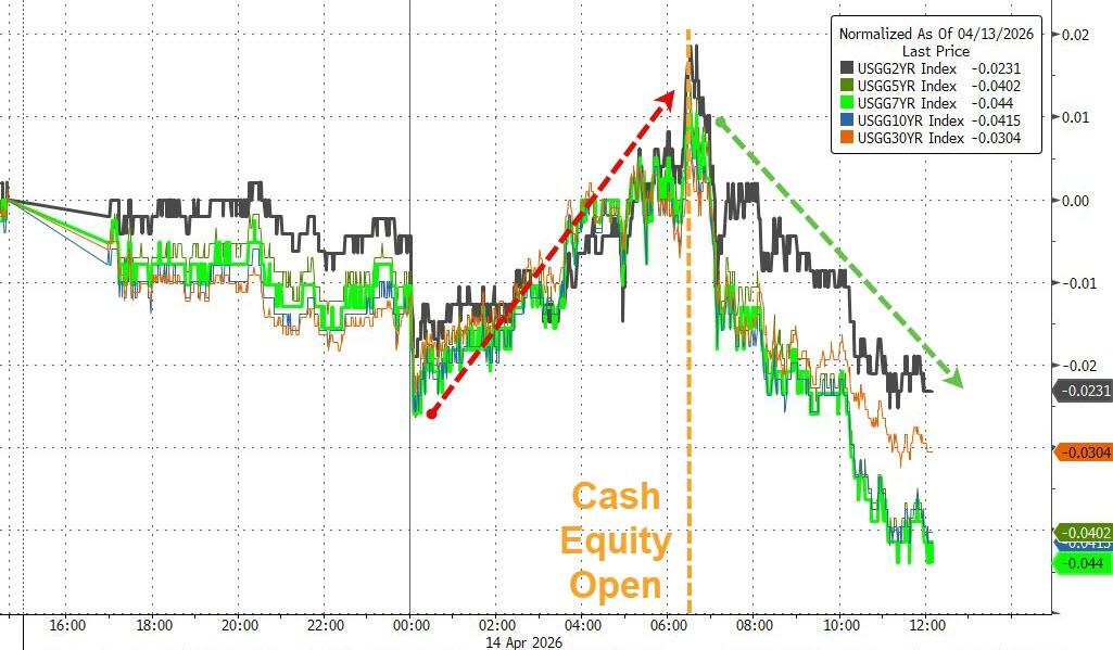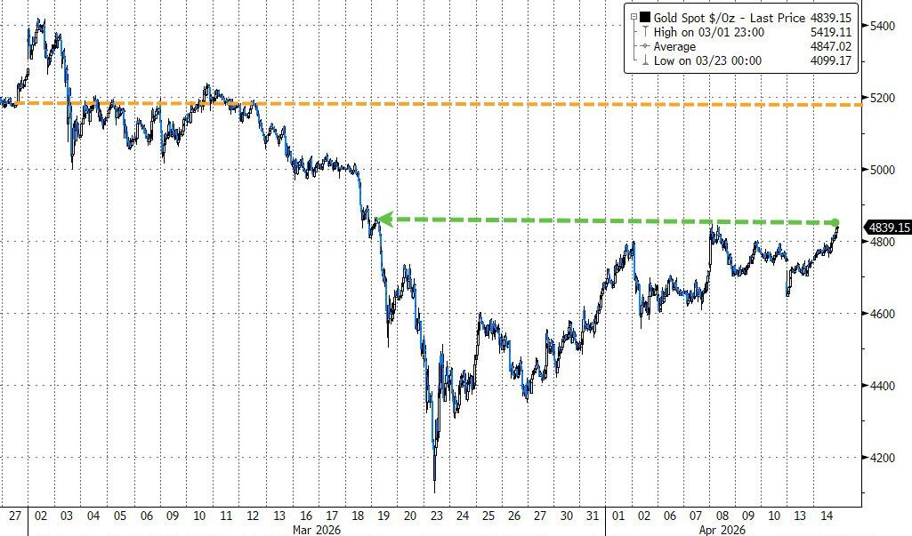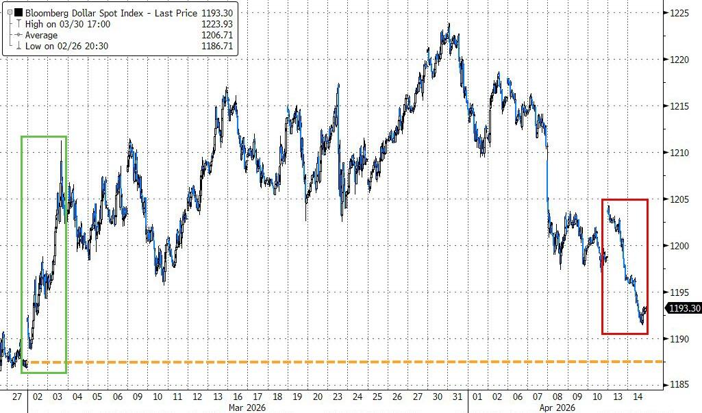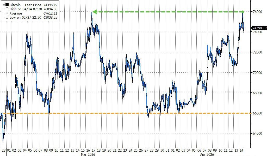 Bond yields dropped, the dollar weakened, gold pushed above $4,800 (its highest since mid-March), and Bitcoin was on fire again, topping $76K — its highest level since the war began.