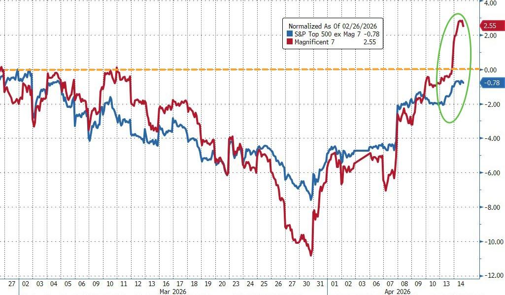 The Mag 7 had another strong day, up 3% and outperforming the rest of the S&P 493. They’re now up 9 out of the last 10 days.