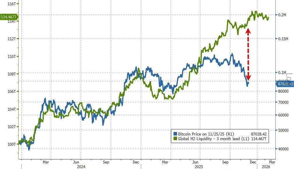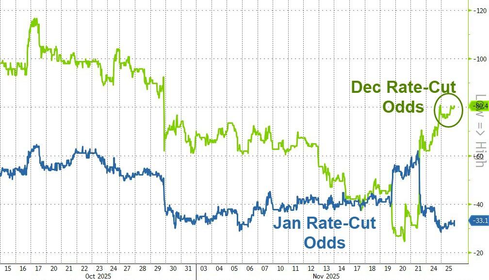 Macro data was straight-up ugly—weak ADP jobs, trash retail sales, cooling housing, lousy consumer confidence—but in this market, “bad news = good news” because it cranks December rate-cut odds even higher (now north of 80% after John Williams’ dovish comments Friday).