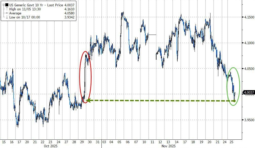 That sent the 10-year yield below 4%, the dollar lower, and gave stocks the perfect excuse to rally.