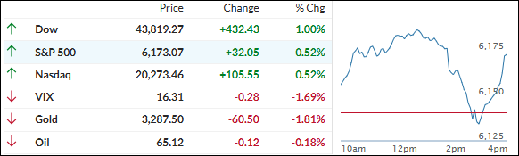 The major indexes spent most of the day climbing, helped by renewed appetite for growth and AI names after Monday’s stumble.