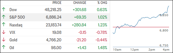 Then came the pivot. Equities caught a bid after Trump said Iran wants to “work a deal.” That single comment was enough to push the major indexes to session highs and quickly revive bullish sentiment.