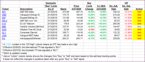 Domestic TTI: -3.31% below its M/A (prior close -2.33%)—Sell signal effective 02/27/2020