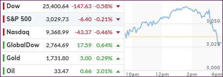 A follow-through rally ran into a brick wall, took a U-turn, and headed south with the major indexes being pulled off their lofty levels and below their respective unchanged lines.