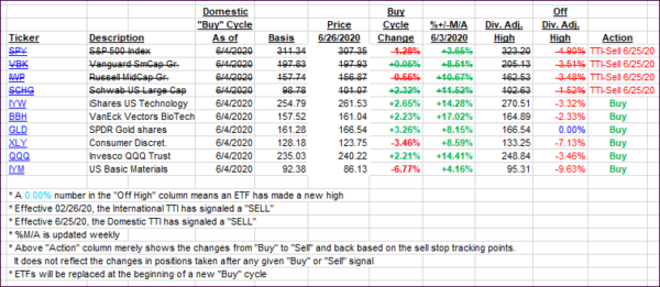 For this new domestic “Buy” cycle, which ended effective 6/25/2020, here’s how some our candidates have fared: